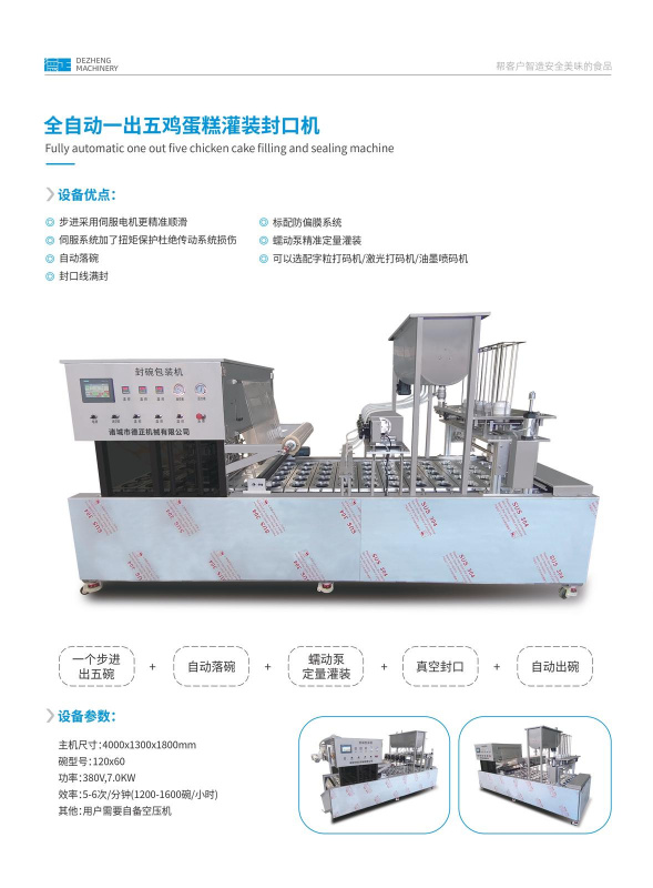 全自動一出五雞蛋糕灌裝封口機